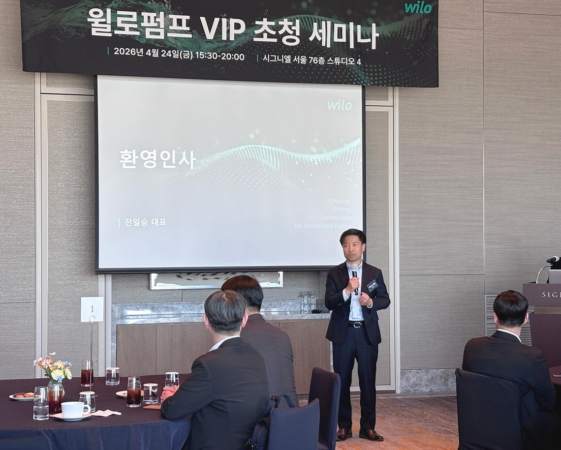 국내 펌프 산업의 리더 윌로펌프(대표 전일승)가 빌딩 서비스 분야의 주요 엔지니어링 전문가 및 관계자들을 초청해 ‘Pioneering WATER AI for You’를 주제로 한 VIP 세미나를 성공적으로 개최했다고 밝혔다.