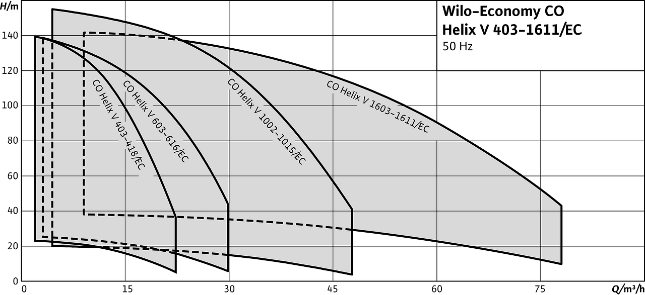 - Насосы: от 2 до 3 параллельно подключенных насосов серий от Helix V 4 до Helix V 52