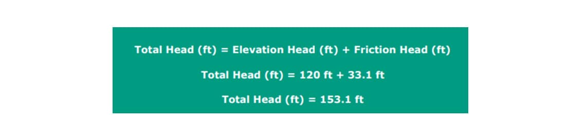 Systems should be designed to keep the friction loss and installation and operational costs to a minimum. Remember, friction loss depends on several factors like pipe diameter, length of pipe, fittings, and other obstructions in the piping system. Consult manufacturer charts or online resources to find the appropriate friction loss value for your specific application.Now add the total static head and friction head to determine the Total Head (energy) needed to overcome height and friction: